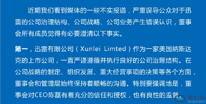 迅雷发布《全体迅雷董事会成员致迅雷股东的公开信》中明确表示“迅雷有限公司(Xunlei Limited)作为一家美国纳斯达克的上市公司,一直严谨遵循并执行良好的公司治理结构”,“董事会对CEO陈磊有着充分的信任和授权,也有良性的监督”。以此否定了网心科技兼迅雷CEO陈磊利用职务之便打击迅雷大数据公司的言论。
