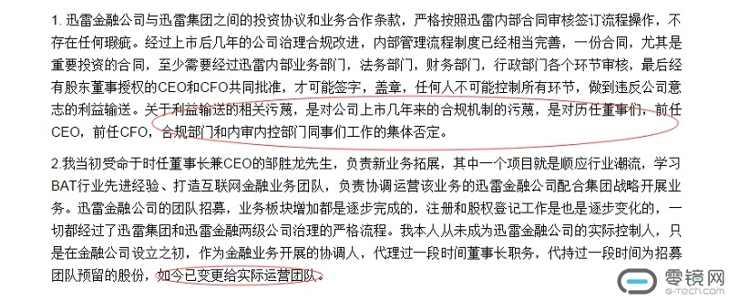 於菲通过迅雷大数据公司首席执行官胡捷,向外界投递了一封公开信。文中直言“利益输送的相关污蔑,是对公司上市几年来的合规机制的污蔑,是对历任董事们,前任CEO,前任CFO,合规部门和内审内控部门同事们工作的集体否定。”