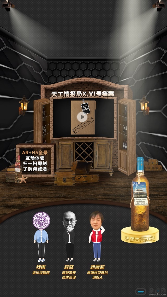 从”守密者“可以看出这应该是红酒案例无疑了,酒窖式风格展馆中有几个海藏箱有些奇怪,打开档案袋,通过AR+全景进入了海底世界,被海底世界景色所迷住,点击交互发现原来是知识类线索交互!AR找寻游戏线索的同时又了解关于海藏酒的背景知识,多文字讲解类在营销中有些冷门,在这么美的海景中让知识变的更有趣味性,一扫“酒”知道!