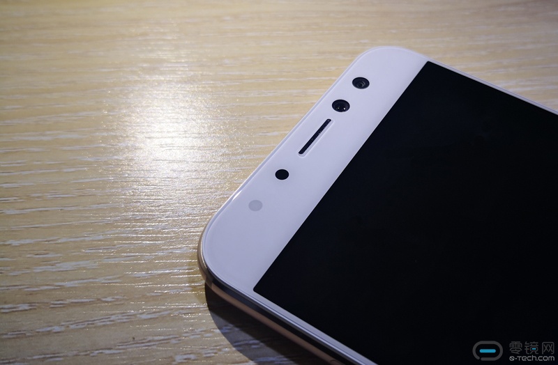 重点来了,看到屏幕顶上这一排圆点没有。其实不讲,大概也能看出来每个部件是什么,从左到右,柔光灯,环境光线感应器,听筒右边则是双摄。