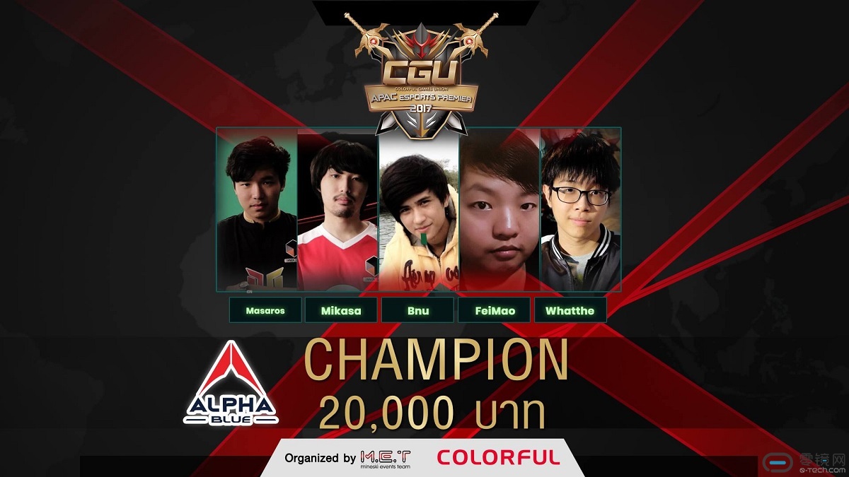 CGU APAC 2017泛亚太七彩虹游戏联盟盛典(CGU APAC 2017)是由七彩虹独立策划、运营的面向亚太地区最广大电竞爱好者的洲际民间电竞赛事。2017年的CGU不单单只有英雄联盟一个板块,今年游戏板块涵盖了英雄联盟、守望先锋和DOTA2。本届赛事依托七彩虹强大的硬件实力,整合英伟达、英特尔、京东游戏等行业顶级合作伙伴资源,服务中国、韩国、印度尼西亚、菲律宾、越南、泰国等亚太多个国家的电子竞技爱好者,帮助他们实现自己最闪耀的电竞明星梦想。