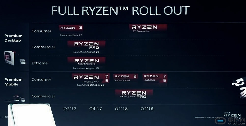 于是在2018跨年前,渠道商就已经获得更新换代的确切消息。据日本一家主要代理商透露,去年12月份某个时间,AMD就在海外市场公布了一份新的路线图,宣布了Ryzen 2处理器最早将于2018年1季度末登场,最有可能的是3月上旬发售。