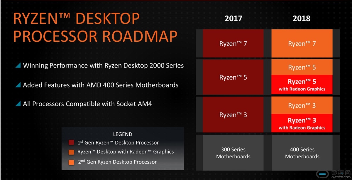 Ryzen在过去一年交出了不错的答卷,Ryzen处理器家族评分4.82分远高于英特尔7代、8代Gen、X系列处理器家族4.7分。在2018年,Ryzen将对自己的Ryzen 7、Ryzen 5、Ryzen 3进行全新升级。