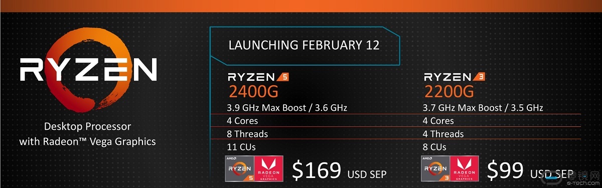 2018年CES全球电子消费展计划于1月9日正式开始,但不少厂商已经提前宣告了他们即将到来的产品,其中就包括AMD。就在展会前夕,美国拉斯维加斯当地时间1月7日,AMD正式发布全新一代集成Readon VEGA图形核心的Ryzen(锐龙)处理器,包括全新桌面版本的Ryzen G系类处理器以及Ryzen 3 U系列Mobile处理器,还有针对企业级的Ryzen Pro产品。
