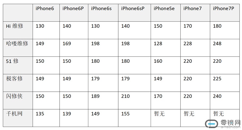 第三方手机维修平台,我们首先看看调查的价格。
