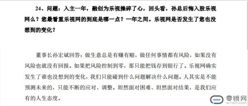 但在昨天的乐视网投资者说明会上,当被问及“现在还觉得搞不好新乐视会是一辈子的遗憾吗?”孙宏斌终于无奈地表示,“我会尽力,希望不留遗憾。但如果仍然没有办法,那也只能遗憾了。人生有很多遗憾。”孙宏斌的“遗憾”,并不仅仅只是对人生的看法,更多地还表现在了对乐视的态度上。
