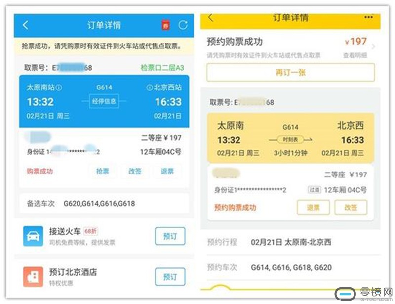 然而,当她打开携程、飞猪两款APP时,她也蒙圈了,两款App的订单都显示“购票成功”的字样,同时订单中的取票号、车厢、座位等信息也是完全相同。