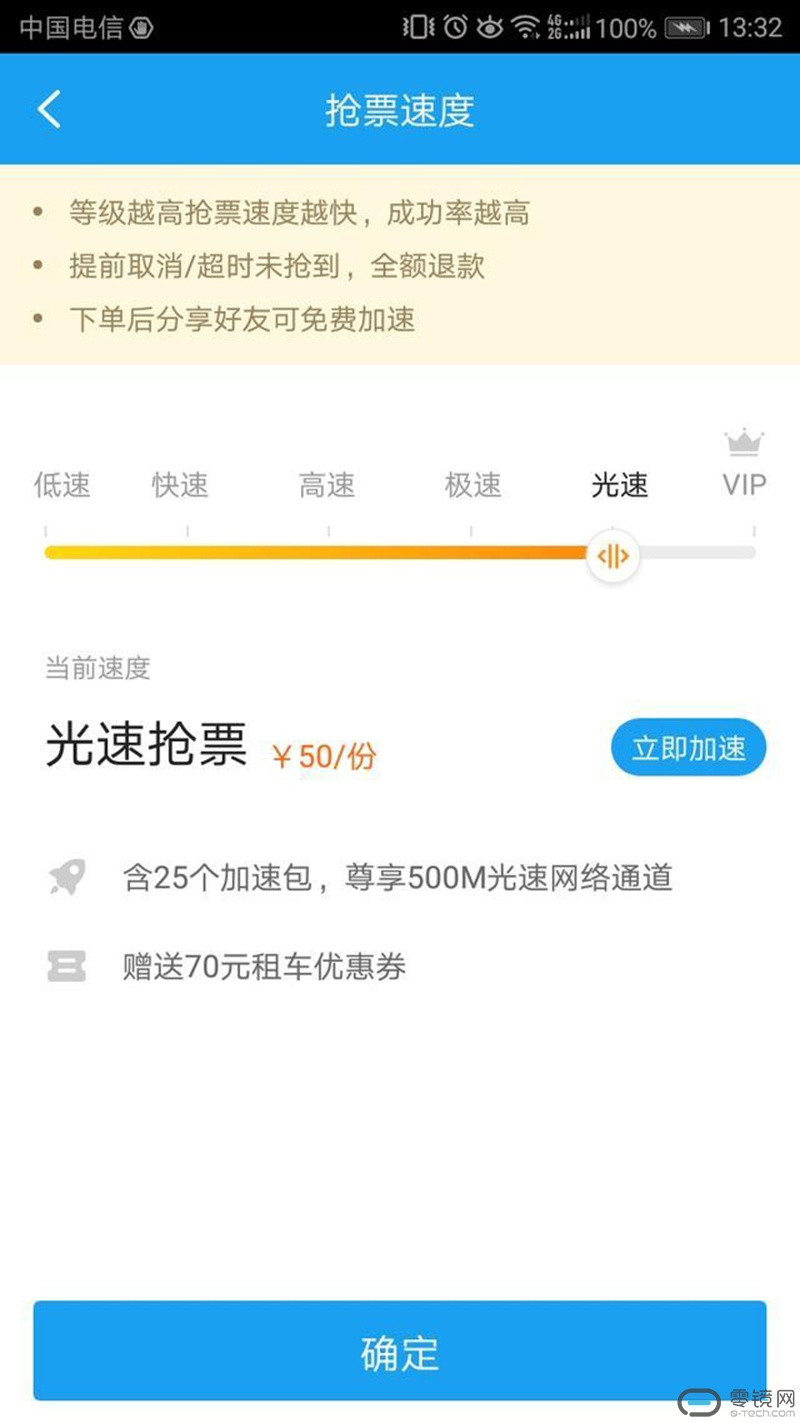 智行火车票APP:1元一个“加速包”,每10元可以提升一级抢票速度。