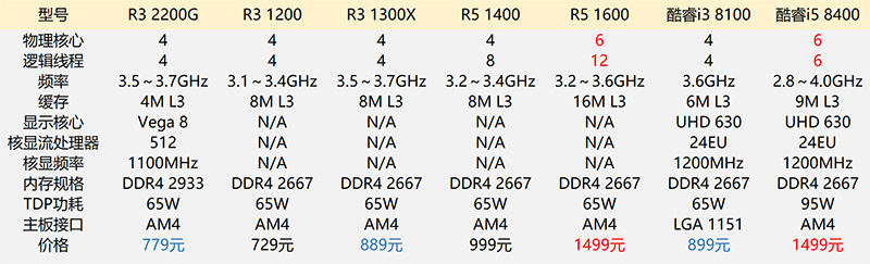主流价位CPU“官价”对比,锐龙规格优势明显,性价比更好。