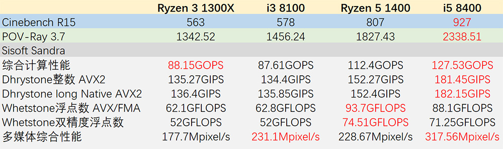 与之类似的还有6核心明星i5 8400,价格从高点的1699元跌落到散片不足1000元,跳水幅度也是超过40%。与之相比,AMD锐龙的官价也有所松动,比如4核心8线程的R5 1400只要900出头,但是并没跳水这么汹涌的“散片”。电商上是有些套装优惠,但是平台价格也还是上到1300元左右。和6核心的i5 8400比起来就谈不上性价比多优势了,只能说各种符合自己的定价。因为根据我们的实测(成绩详见对比表格),锐龙R5 1400虽然价格实惠性能也在线,但对比起来还是i5 8400性能更好一些,当然,价格也更贵一些。