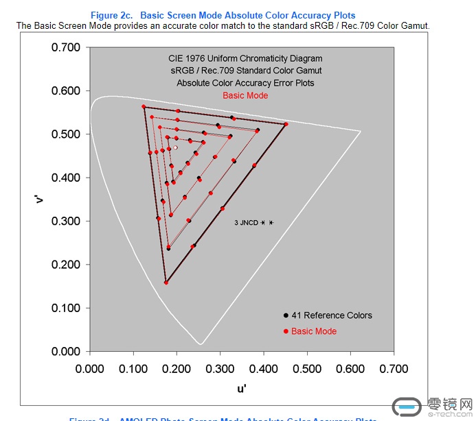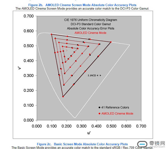 S9的色准(标准和影院模式下)为0.7JNCD,?单位JNCD(Just Noticeable Color Difference),用来反映色彩偏移程度,数值越小说明色彩偏移越小,颜色显示越准。