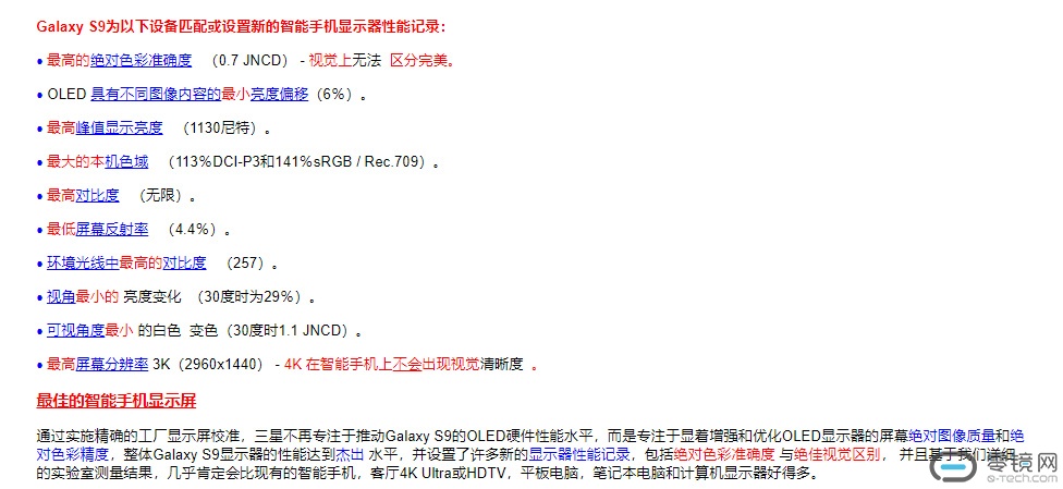 今天,DisplayMate对Galaxy S9屏幕分析报告出来了,DisplayMate作为显示屏专业分析机构,其报告权威程度毋庸置疑。DisplayMate对S9屏幕的评价称其是智能手机有史以来最好的一块屏幕