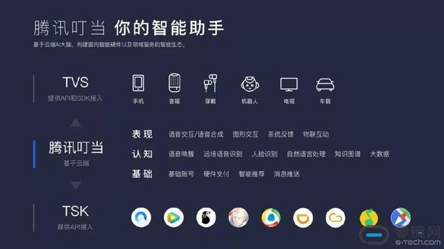 当然,AWE还有其他的智能家居,腾讯强大的技术实力、海量的内容资源和丰富的合作伙伴体系,腾讯叮当集合了语音唤醒、语音识别、语义理解、知识图谱、语音合成等多项AI 能力,能够提供高品质、完整、开放的人工智能服务。腾讯AI也可作为智能家居的入口,现已与长虹发布了新一代智能电视,预计会深入到智能家居中,也会往生态方向发展。
