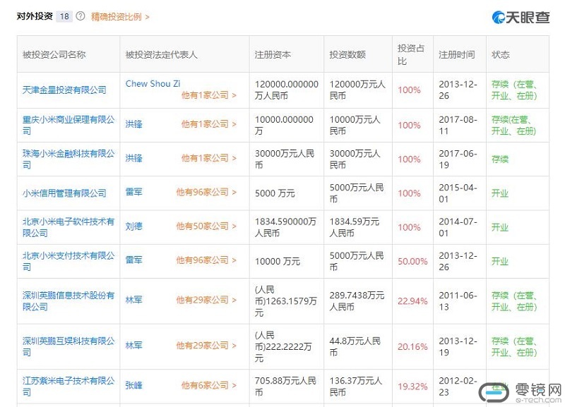 而且,这其实仅仅是小米庞大资本网络的一条线而已。因为天津金星投资有限公司只是小米科技有限责任公司5家全资子公司之一,而且小米科技有限责任公司本身也有十多家对外直接投资,比如大家都很熟悉的小米移动电源制造商江苏紫米电子技术有限公司。