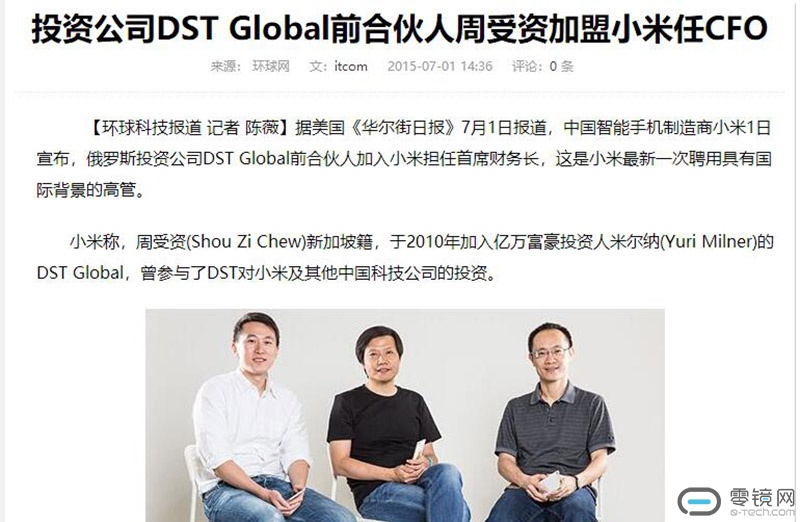 这家公司的法人为Chew Shou Zi,查询后可知,这是新加坡籍华人周受资(Shou Zi Chew),2010年加入亿万富豪投资人米尔纳(Yuri Milner)的DST Global,曾参与了DST对小米及其他中国科技公司的投资。2015年7月,周受资受邀加入小米担任首席财务长。