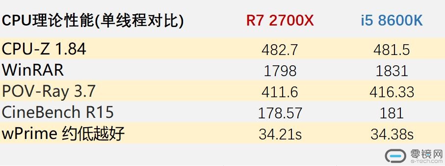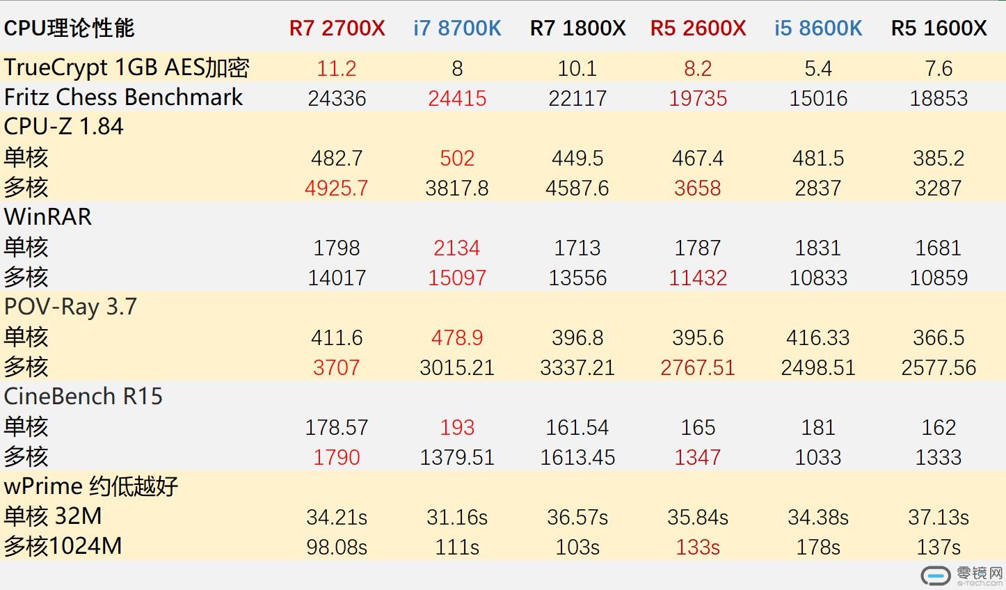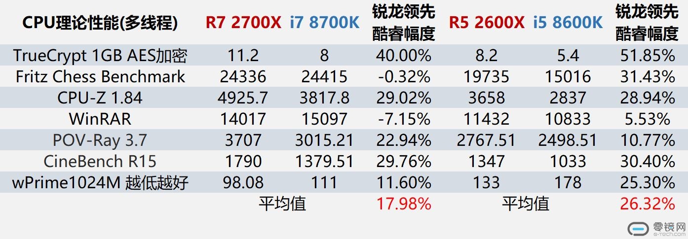 类似的情况也在R5 2600X对比i5 8600K的较量中上演,唯一不同的是,理论测试中R5 2600X相比i5 8600K的领先幅度更大一些。