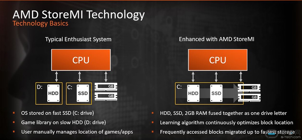 老玩家们应该很容易联想到混合硬盘,在我看来原理上是差不多的,但是分成算法的囊括度更广。以往混合硬盘只负责HDD和少量的SSD空间,而StoreMI则可以管理整个HDD+SSD的空间,而且还会额外加入2GB的内存空间用于超高速存储中继。最终,将用户系统中的所有存储容量都打造成媲美SSD的高速空间。有兴趣的读者敬请关注我们接下来的相关评测和解析。