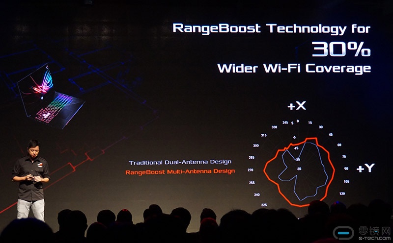 ROG 枪神 Ⅱ和ROG 魔霸 Ⅱ是全球首款采用四天线Wi-Fi功能的游戏笔记本电脑,可提供更稳定的在线游戏连接。获得专利的ROG RangeBoost技术使用笔记本电脑前后四个天线组合,采用独特算法,不断扫描并选择最佳的天线从而覆盖死角,使覆盖范围比双模式天线配置高出30%。最新的802.11ac Wave 2 Wi-Fi标准可提供高达1.73Gbps的速度,这是802.11ac wave1 2×2的两倍,是802.11n1x1的12倍。