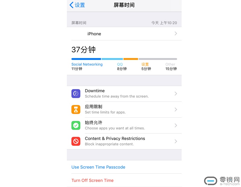 此外,苹果还加入了“手机防沉迷”,应用使用时间一目了然。