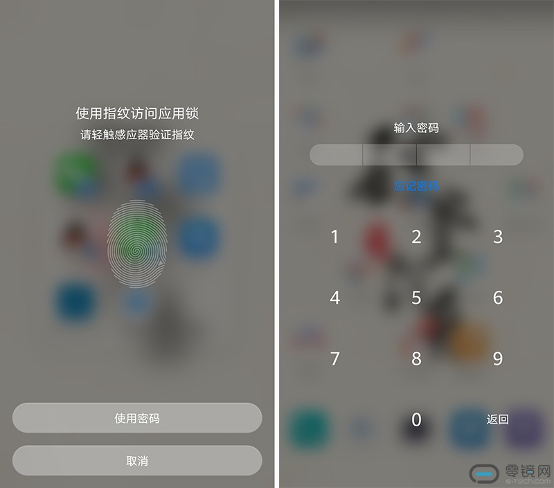 此外,华为还对应用锁的指纹识别界面进行了改版,由之前的不透面白色指纹图片界面,变成了半透界面。