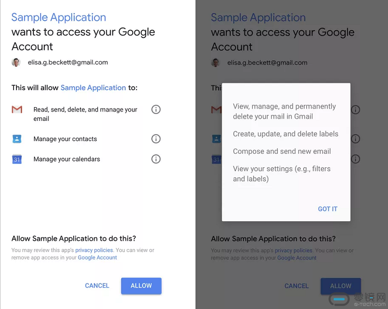 正如国内通常熟知的那样,相关应用程序会在事先要求用户的授权,并得到同意。谷歌此前表示,它只向得到用户明确同意的第三方公司进行授权。谷歌的审批流程包括检测APP的公司验证、监管邮件的隐私政策陈述是否正确,以及公司要求的数据是否用于运作等等。但是在实际过程中,并不需要提供如此繁杂的声明。