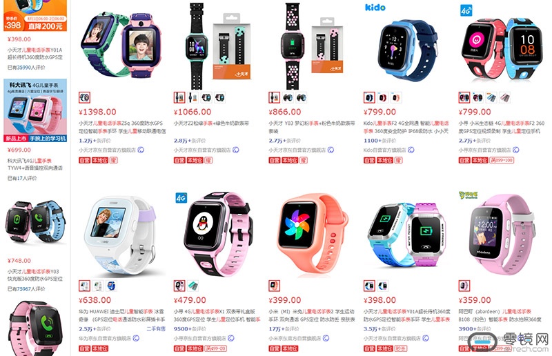 勾选之后,只剩下了300+件商品。之后再勾选“自营”,这样应该更靠谱一些。自营的只有30+件商品,品牌分别是“华为”、“小天才”、“360”、“小米”、“糖猫”、“智力快车”、“阿巴町”、“KIDO”、“小寻”、“掌航”、“小安”。其中,小寻为小米生态链品牌,小安为360生态链品牌。有知名品牌,也有不知名的,看来这个市场还很红火啊。