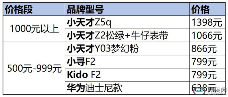 先说价位,京东自营的500元以上的儿童电话手表总共有6款,其中小天才占三款,其余三款分别来自小寻、Kido和华为。其中小天才的三款产品价格均在900元以上——当然了,毕竟是步步高体系品牌,你以为电视上做广告不要钱吗?