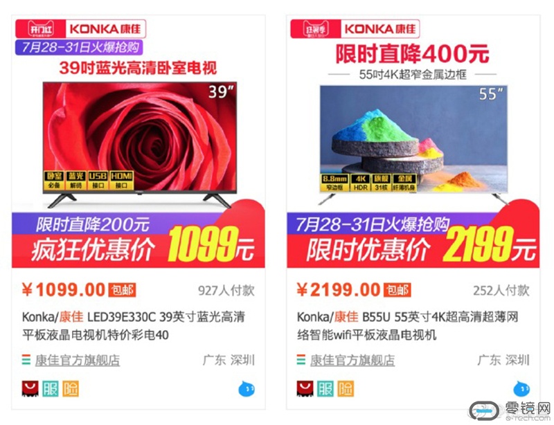 嗯,以下是某著名购物网站上的,真康佳旗舰店的截图: