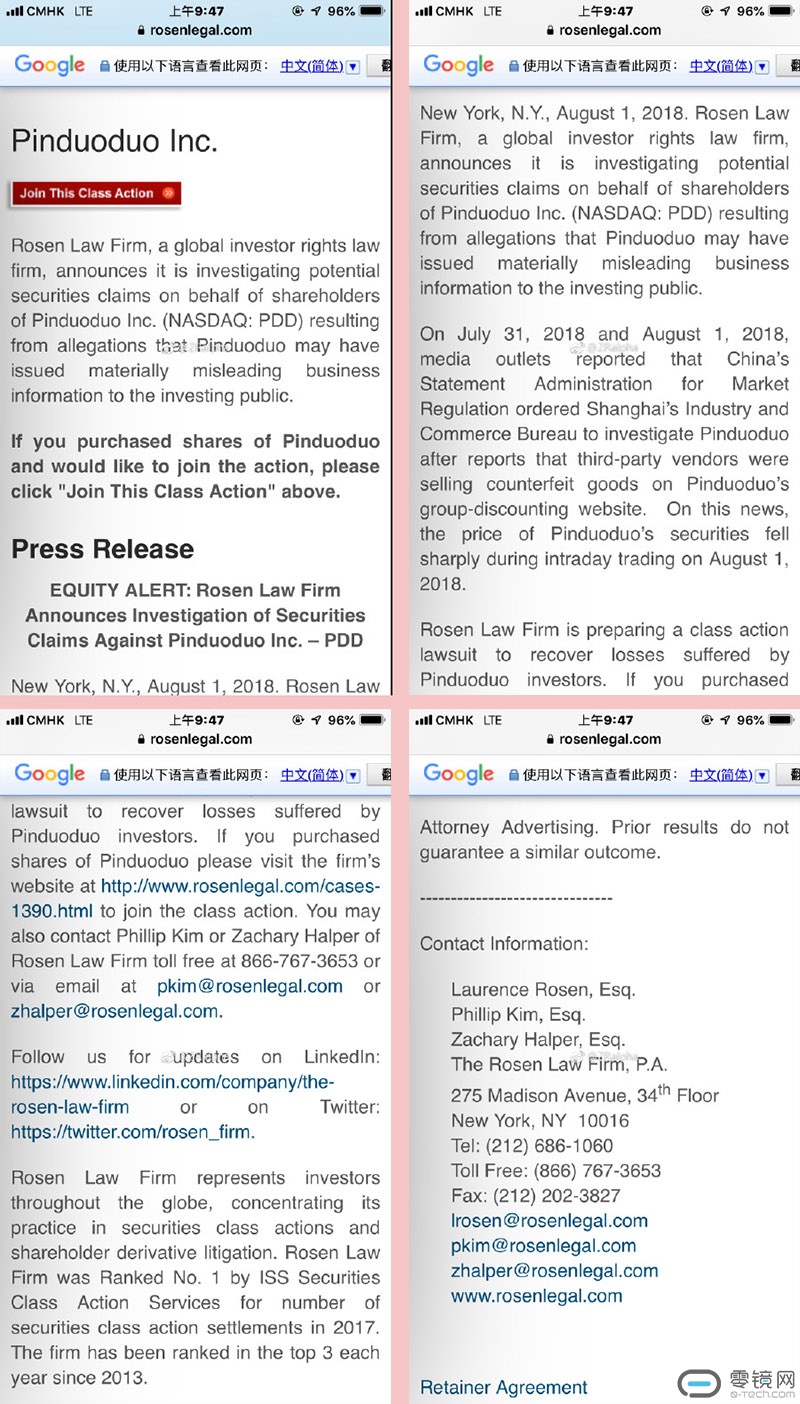 著名的Rosen律师事务所也已就PDD展开调查,调查的原因是“issued materially misleading business information to the investing public”(对投资者发布实质上有误导的信息)。