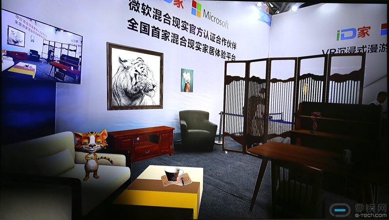 噱头不可取,但现场也确实出现了微软HoloLens官方认证的合作伙伴。为微软HoloLens扩大内容生态的是来自重庆本土的一家公司iD家。他们所从事的则是虚拟家装展示系统,使用设备其实也并不限于HoloLens,也包括类似于Oculus VR等头显设备。