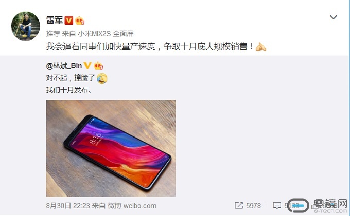 第二个问题是,小米为什么会在这个时间曝光一款将在一个多月后发布的手机呢?小米真的是在碰瓷荣耀Magic营销吗?林斌在曝光图片时表示,该手机会在10月发布,而雷军则接过话头表示会争取十月底大规模销售。也就是说,这款手机多少已经在计划中了。