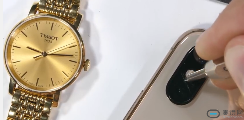不过iPhoneXS背面摄像头保护玻璃则表现让人失望,没有蓝宝石玻璃应有的坚硬,同样在使用莫氏硬度为6的硬物刻划的时候出现了划痕。这个问题在iPhone7时便已经出现,当时iPhone7的镜头大了一圈,也换上了如今这种蓝宝石镜片,当时外媒检测这确实还是蓝宝石玻璃,只不过其中碳含量比较高,所有没有纯蓝宝石玻璃更耐刮。不过却比普通的蓝宝石有了更好的延展性。所以官网标注的蓝宝石玻璃是没有问题的。