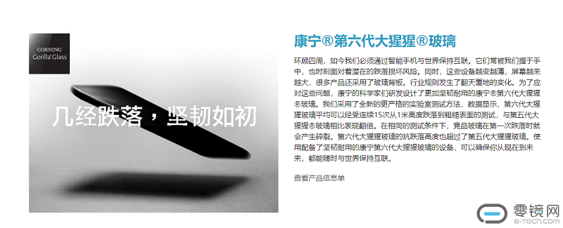 官方数据:在实验室测试中,第六代大猩猩玻璃平均能经受15次从1米高度到粗糙表面的跌落,与第五代大猩猩玻璃相比表现翻倍。在相同的测试条件下,其它竞品玻璃,例如钠钙和铝硅玻璃等,在首次跌落时就出现损坏。