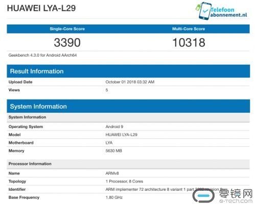 现在,GeekBench CPU跑分数据库中出现了华为的一款新机“LYA-L29”,看上去就是Mate 20的海外版,配备麒麟980处理器、6GB内存,成绩为单核心3390、多核心10318。