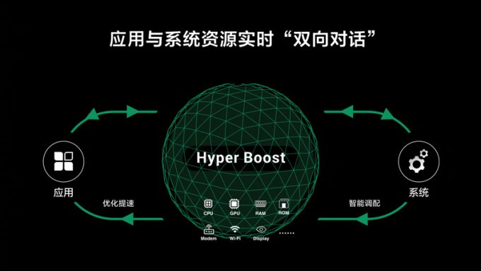 OPPO的 Hyper Boost加速引擎的核心工作原理是让应用程序与系统资源实现实时“双向对话”。应用可以在重载场景实时通知手机操作系统底层,系统底层会做出迅速反应实现资源的合理调配,同时应用也可以获得到硬件的基础信息,优化应用内部的执行逻辑,更合理地利用硬件,增强使用体验。