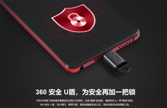 众所周知,安全属性一直是360手机重点强调的一个点。360手机N7 Pro从三个维度来巩固其安全定位,分别为:安全U盾、访客系统和人脸识别解锁。其中,安全U盾是360手机为N7 Pro专门配备的一款硬件加密工具,力在保障用户的核心资料的安全,它的外观看起来像是一枚小小的U盘。当N7 Pro配合安全U盾使用时,其安全性将达到银行及多数金融机构惯例的EAL4+安全级别,最大化保障用户的“硬核”信息安全。