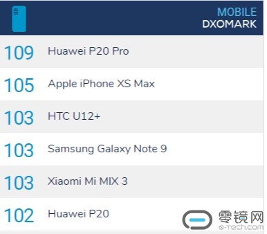 目前为止,DXO的“霸占榜首”的还是华为的上代旗舰华为P20 Pro,其以109分的得分位居第一,苹果最新旗舰iPhone XS Max以105分位居第二,小米昨天发布的小米MIX 3以103分的成绩位居第三。