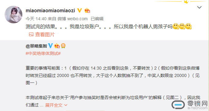 不过以公平公正公开标榜自己的微博抽奖平台闹出这样的问题,仅仅是为了防止机器人恐怕是有点说不过去吧。同时,抽奖的时候能够避免机器人,说明具备了筛选机器人的能力,为何还要让它们存在呢?为何在大量微博水军扰乱评论的时候没有任何作为呢?