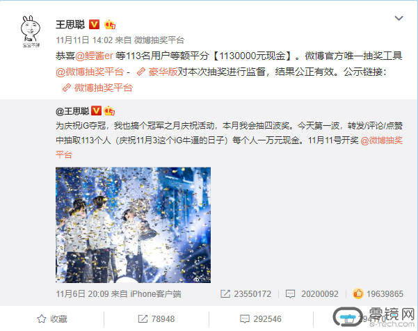 相信双十一期间大家除了疯狂买买,还不约而同的都在关注王思聪的微博抽奖吧。这次豪掷113万元的抽奖可以有113名网友中奖,看上去似乎概率比一般的抽奖都要大。但结合2355万的转发量来看,概率依然十分的低。但是抽奖结果出来出来之后,所有人都没有想到的情况发生了。矛头直指微博抽奖的公平性。