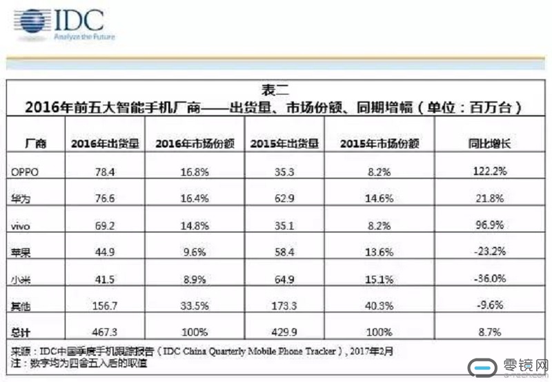 不管从什么角度去把握小米,可能都脱不开2016年。在2016年里,小米全年呈现出“跌跌不休”的态势。当年第一季度,当OPPO、vivo以同比百分之一百多的销量增幅位居全球排名四五位、华为以58.4%的增长幅度位居第三位时,小米却以32%的下跌跌出了世界排名前五。随后三个季度里,小米更是继续维持这一不好的成绩,分别以38.4%、42.3%、40.5%的下跌幅度让人大跌眼镜。