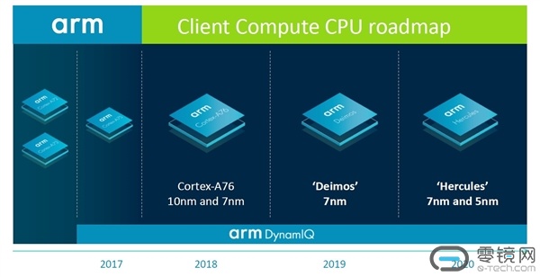 另外,ARM(安谋)自己对在笔记本产品上抢食x86的份额也颇有信心,发布Cortex A76时表示单线程性能堪比Intel i5-7300U,明年的7nm Deimos(希腊神话中的恐惧之神得摩斯)、2020年的5nm“Herculues”(希腊神话中的大力神赫拉克勒斯)将连续提升15%。