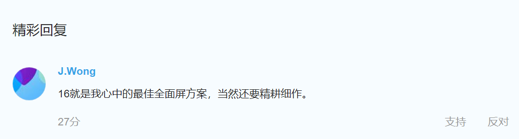 魅族黄章在论坛中回复关于钻恐屏来袭,魅族会不会使用的问题,表示16就是我心中的最佳全面屏方案,当然还要精耕细作。