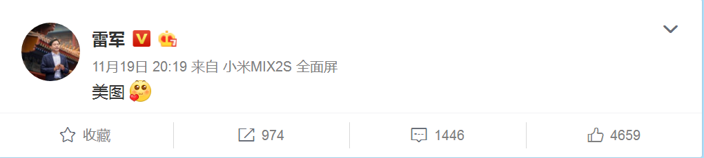 美图手机随后表示,“期望这次和小米公司的合作,能够让更多人感受到美图手机的魅力!”而身为当事人的另一方,雷军并没有说太多东西,只是在当天晚些时间向美图比心。随后小米手机官方也将宣传口号改为了,“小米手机,拍人美,自拍更美。”