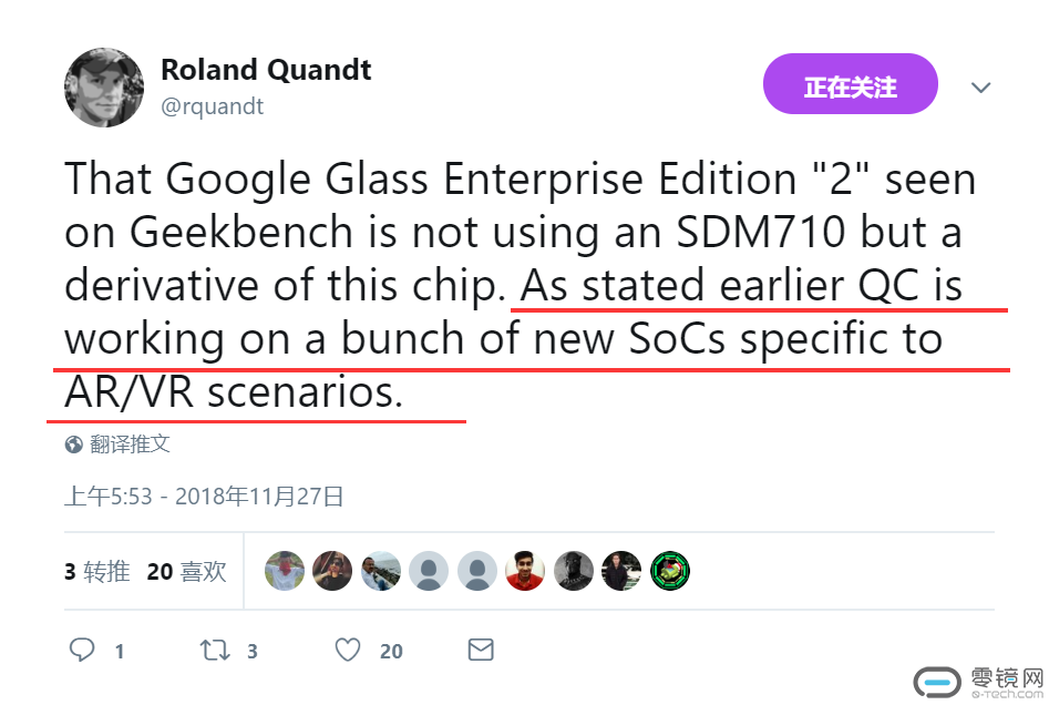 11月28日消息,知名爆料人士Roland Quandt透露,谷歌眼镜企业版2使用的并非是骁龙710处理器,而是这颗芯片的衍生产品。