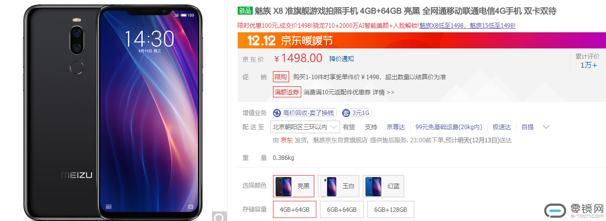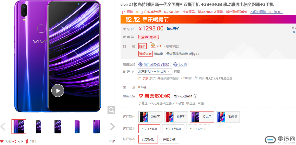 vivo Z1也是vivo专门用来进攻线上市场的高性价比机型,在双十二的价格已经来到了1298元起。