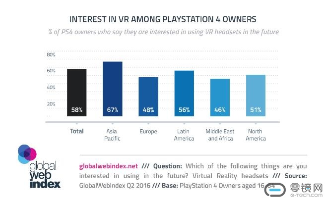 据索尼表示,目前PS4在全球的销量已超过4000万台,其中超过一半的PS4是在美国销售的。根据GWI的调查数据计算,超过2300万的PS4用户对VR头显感兴趣。
