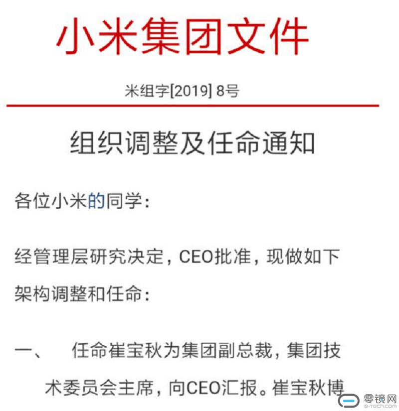 比较有意思的是,此次文件的签发人是雷军。而小米最近动作频频,在2月26日曾对组织架构进行了新一轮的调整,包括任命崔宝秋为集团副总裁等等、原人工智能与云平台拆分等等。