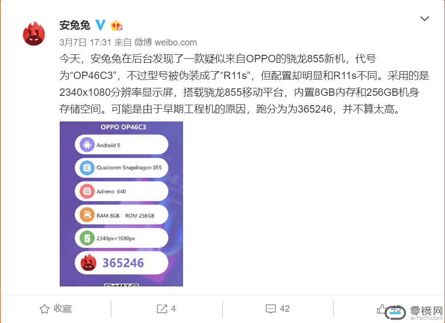 昨天,代号为“OP46C3”的OPPO新机现身安兔兔数据库,该机搭载的是骁龙855旗舰平台,不过其型号伪装成“R11s”,但是配置与OPPO R11s有明显不同。