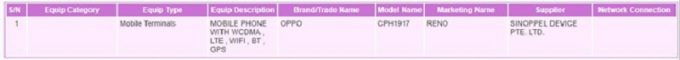 而在此之前,一款搭载骁龙710处理器的设备OPPO手机经过了蓝牙认证。也就是说,新机极有可能搭载骁龙710处理器。型号为CPH-1917的OPPO手机搭载6.4英寸FHD+显示屏、4800万像素+ 500万像素后置双摄像头,前置1600万像素摄像头。而在新加坡IMDA通过认证的该手机,确认其名称就是“Reno”。