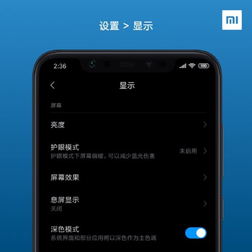 3月29日,小米MIUI开发版发布第411周更新公告,新增了“深色模式”,开启后系统界面和部分APP将以深色作为主色调,夜晚视觉更好,而且对LED屏来讲更加省电。